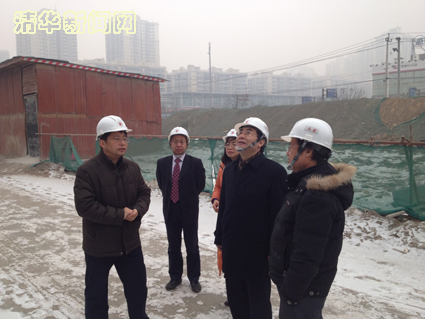 图为校党委书记胡和平调研工程建设进展情况。
